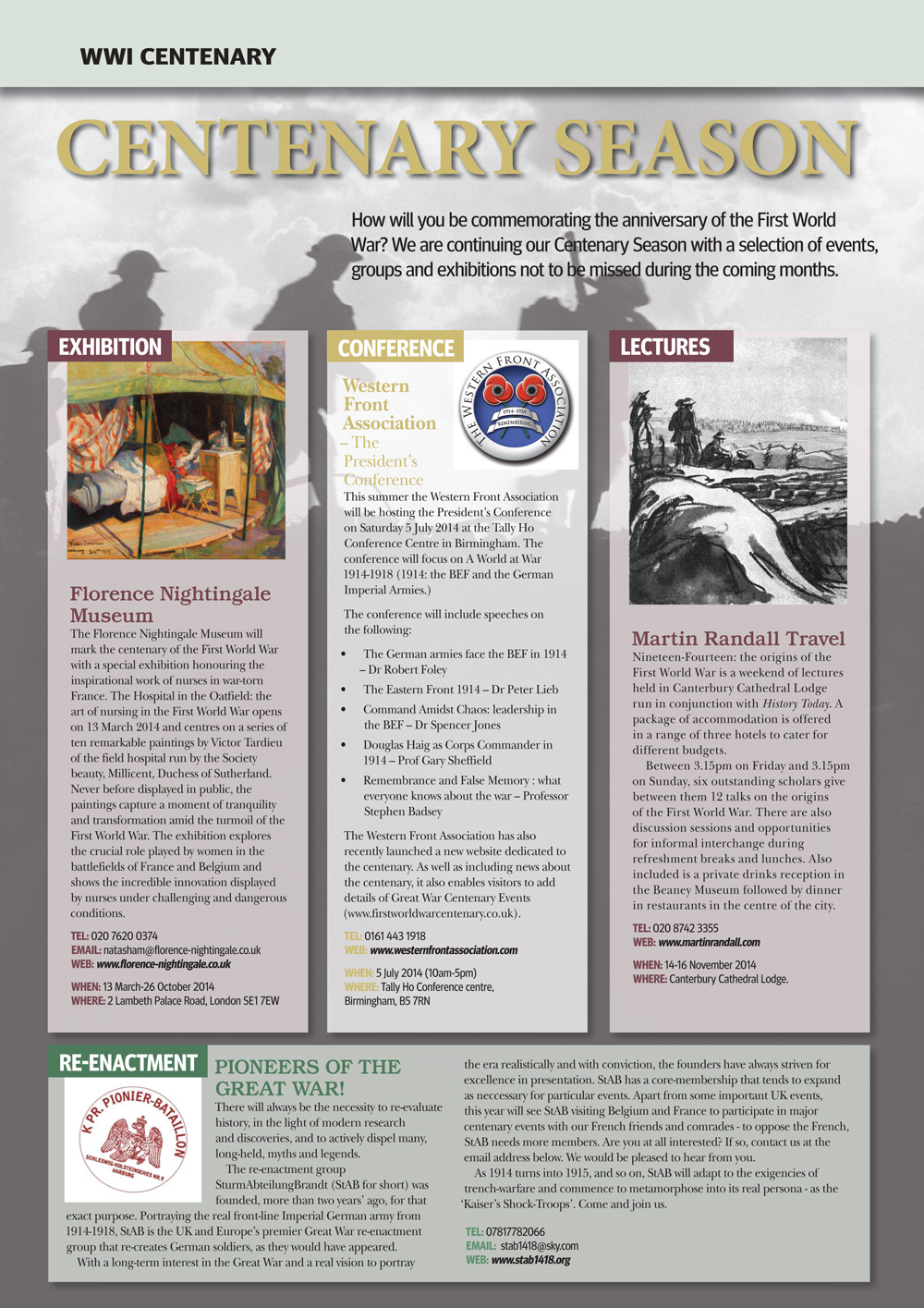 The Western Front Association has also recently launched a new website dedicated to the centenary. As well as including news about the centenary, it also enables visitors to add details of Great War Centenary Events (www.firstworldwarcentenary.co.uk).